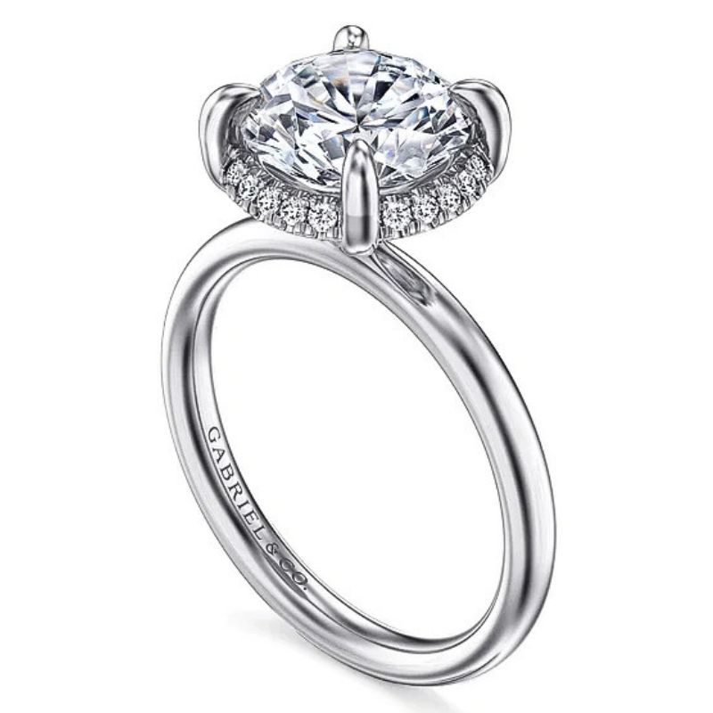 (937) 335-0055Gabriel & Co Round Diamond Semi-Mount Solitaire Engagement Ring With Hidden Halo