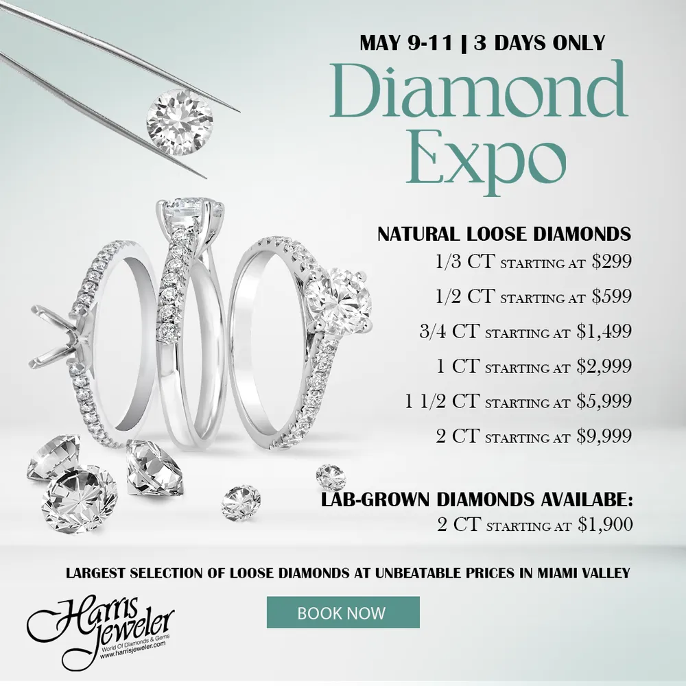 Visit the Diamond Expo at Harris Jeweler, May 9-11, and explore the largest selection of both natural and lab-grown loose diamonds in the Miami Valley at unbeatable prices! For 3 days only, this special event is the perfect time to buy your engagement ring, upgrade your existing ring, or create a new custom design! Browse our different sizes and shapes of natural loose diamonds at special, limited-time prices, to find the perfect one for you: